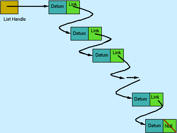 The figure below gives an informal depiction of linked list structure.
